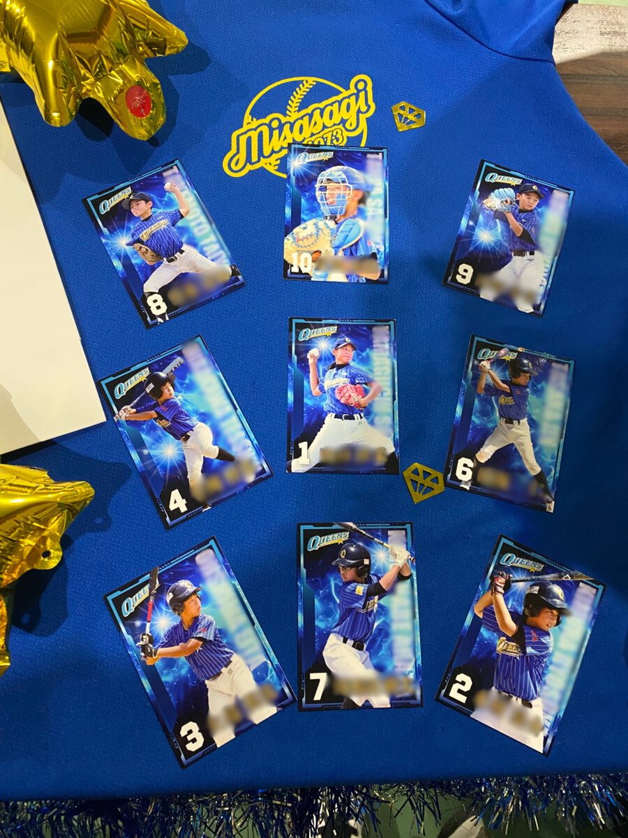 卒団生一人ひとりに、ベストショットとメッセージを添えた世界に一つだけの野球カードとなりました。