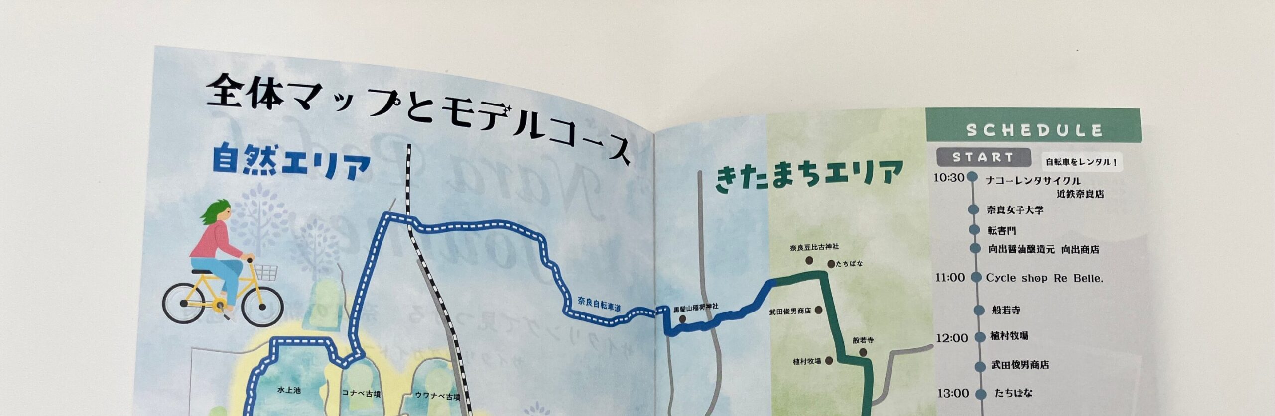 今回のパンフレットでは、きたまちエリアを自転車で周遊しながら観光スポットを巡るモデルコースを提案。